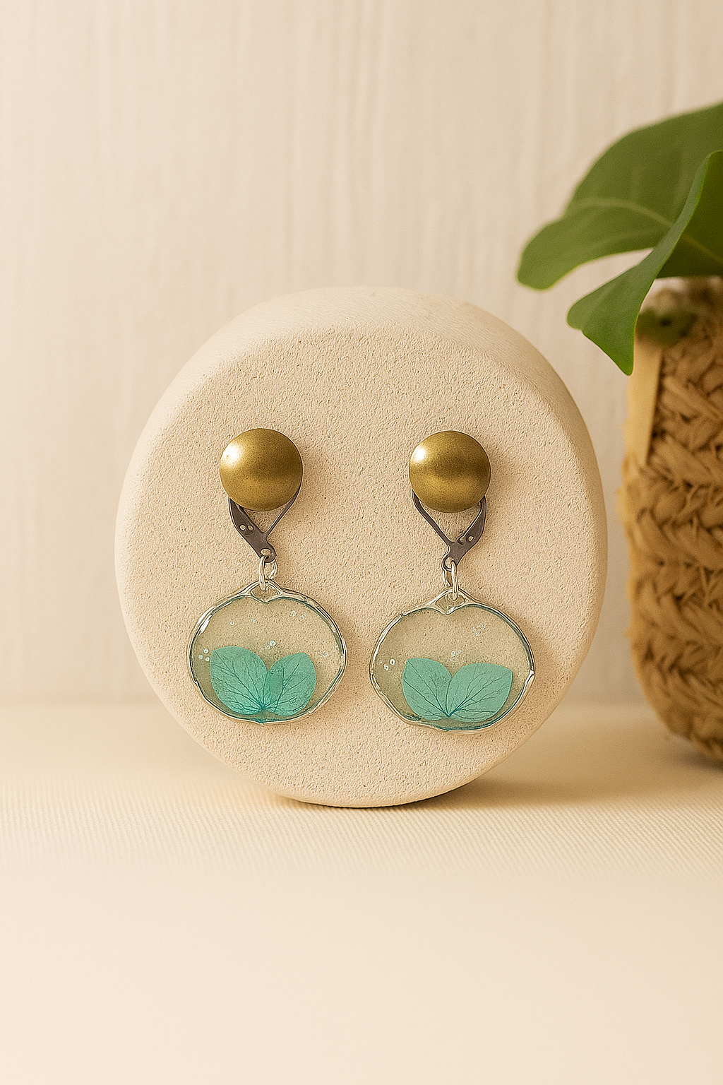 De délicates pétales d’hortensia figées dans la transparence, comme un souffle marin capturé dans la lumière.